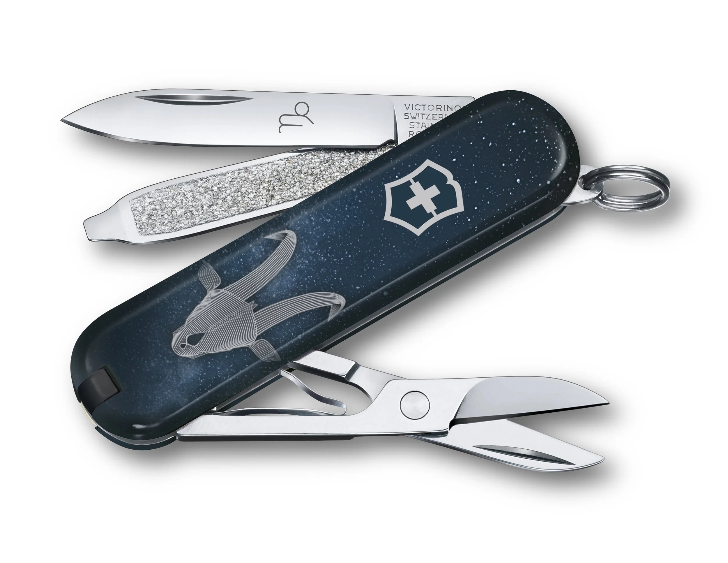 La collection Classic SD Zodiac associe des symboles astrologiques à un design moderne et au savoir-faire de Victorinox. Chaque couteau de poche à sept fonctions représente l’un des 12 signes du zodiaque dans un élégant design bleu nuit, avec le symbole gravé sur la lame. Personnalisé avec des initiales ou une date de naissance, il devient une pièce de collection unique et fonctionnelle.