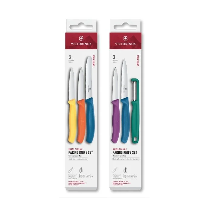 Le set Swiss Classic 3 pièces de Victorinox offre des solutions polyvalentes pour couper, épépiner ou éplucher. Dotés de manches ergonomiques, de lames tranchantes et d’un éplucheur droit en option, ces couteaux passent au lave-vaisselle et sont parfaits pour un usage quotidien. Désormais disponibles en six nouvelles couleurs !