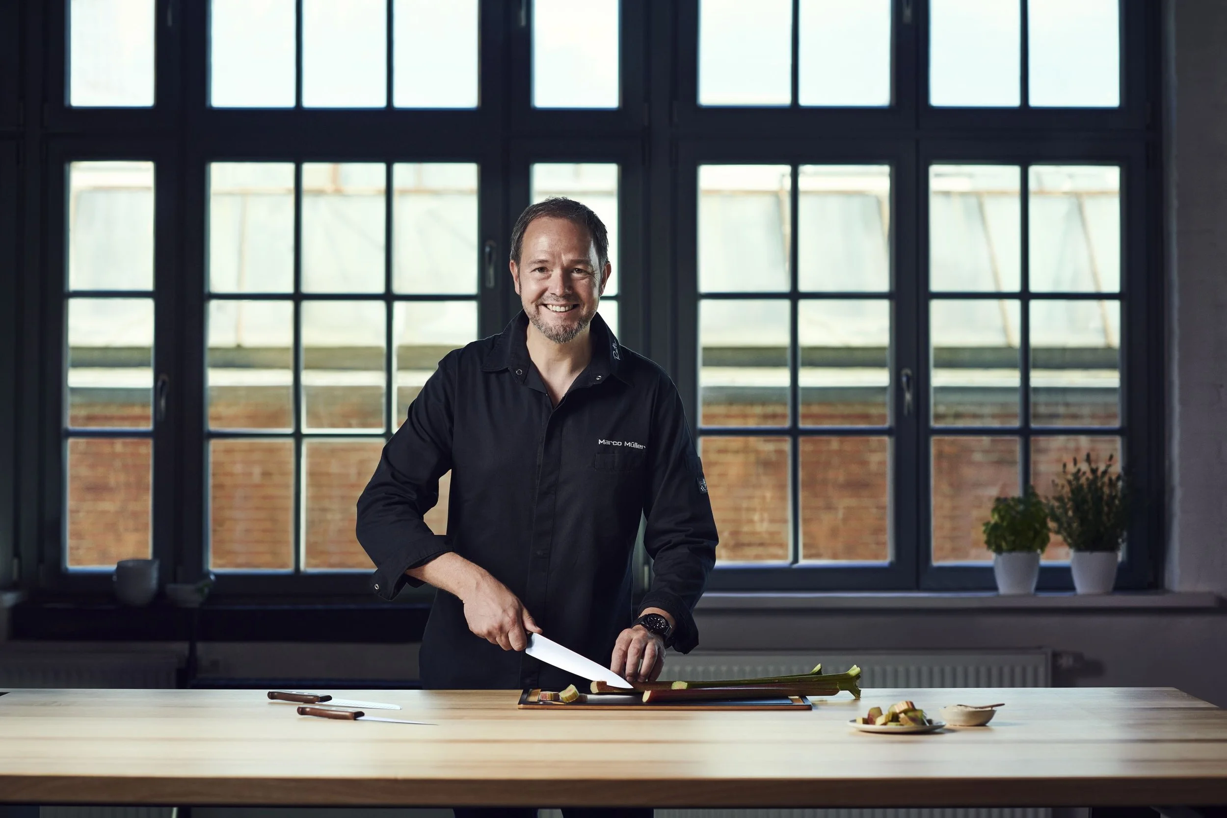 Marco Müller ist Koch des 3-Sterne Restaurants Rutz in Berlin und Markenbotschafter für die Victorinox Küchenmesser.